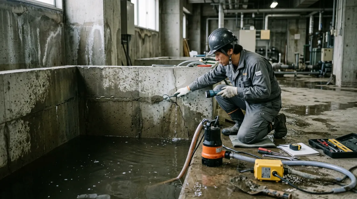 原因によって対応すべき工法や範囲が大きく変わるため、単に水が出ている場所だけを塞ぐのではなく、構造全体や周辺環境を踏まえた調査が欠かせません。とくに、地下水位の変動が大きい地域や、既に劣化が進んでいる建物では、根本的な止水と、再発リスクをどう抑えるかの検討が重要になります。
