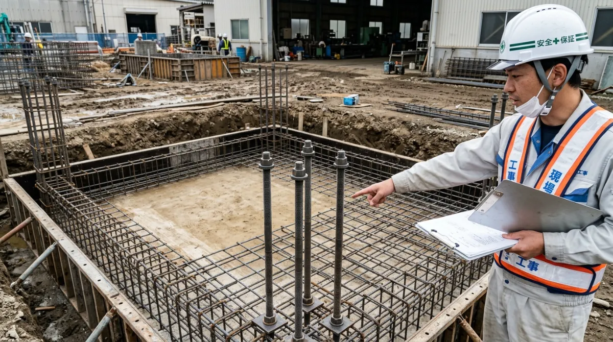 施工中は、アンカーボルトの位置がズレていないかを繰り返し確認しつつ、仕上げレベルを管理します。この一連の工程での管理が、基礎の耐力と寸法精度の両方を決定づける要素になります。