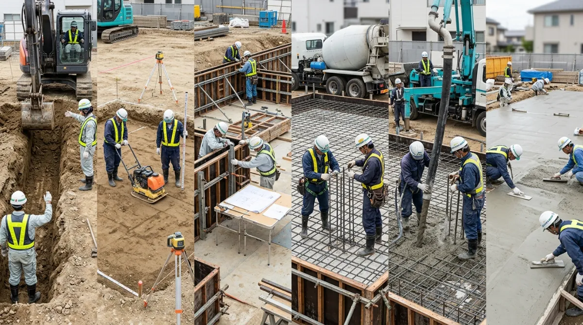 これらを防ぐには、事前に役割分担と施工範囲を明確にすることが大事です。特に、基礎工事だけでなく、既存床の解体や土工事、付帯土間、機械据付との連携まで一括対応できるかを確認しておくと、調整の手間を大きく減らせます。工程が分かれていると打ち合わせ回数が増え、現場管理の負担が2倍近くになることもあります。